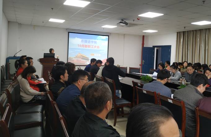 10月17日下午,学院在712会议室召开教职工大会并开展政治学习。会议由院长谈宏慧主持。