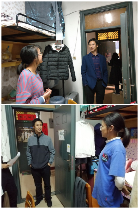 军运会期间,为深入了解学生思想动态,确保学生安全稳定,有效防范各类风险,由院党委书记危煜祥带领,各年级辅导员老师参与,对学院学生宿舍进行了四次走访,做到了被访宿舍全覆盖。