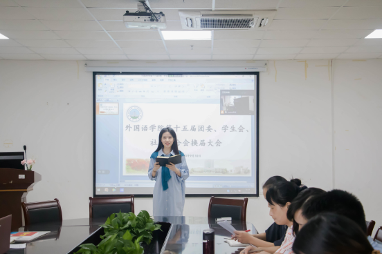 (摄/袁缘 罗娜  文/韩思洁 范期明)为保障学生会工作的连续性,更好的贯彻落实学院的指示精神,充分发挥学生会的职能。9月10日下午14时,我院在文科大楼712室举行了开云体云app登录入口第十五届团委、学生会、社团联合会换届大会。由于我校疫情防控要求,此次会议采取线上线下同时进行的模式。出席此次大会的有党委副书记魏红洁,团委书记许泽琼,辅导员车桥,杜岳青老师以及学生会主要学生干部。本次会议的主持人为第一团委副书记兼学生会主席李梓雯。