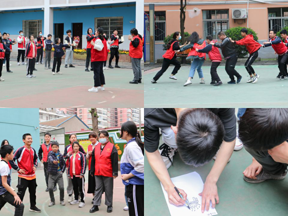 在抵达沙市特殊教育学校后,志愿者们与学校负责人进行了沟通,在老师的积极号召下,特殊儿童们纷纷积极参与到丰富多彩的游戏中。首先,黄曼妮带领孩子们做热身操-Tooty Ta song,在其热情洋溢的领操下,现场气氛活跃起来。接下来,游戏环节拉开帷幕:在老鹰捉小鸡游戏中,志愿者和孩子们你追我躲;在老虎猎人枪游戏中,各个小队成员卯足了力气,力争为队伍赢得更多的奖品;在贴膏药游戏中,孩子们纷纷你追我赶,大家虽然在游戏过程中流了不少的汗水,却始终绽放着开心的笑容;在“你画我猜”游戏中,孩子们发挥了自己丰富的想象力,各显身手;最后一个游戏“爱的抱抱”:一名志愿者站在圈圈的中间,其余的人围成一个大圈圈,当志愿者停止放音乐后,大家就要根据她所报出的数字来抱团取暖。经过几轮游戏下来,孩子们已经由刚开始的生疏害怕,渐渐到主动热情。在这些精心准备的游戏过程中,不仅收获了快乐,更增进了彼此间的感情。